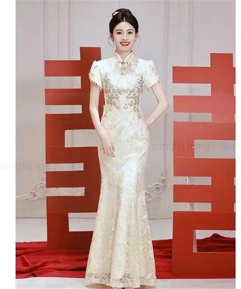Chinese Traditional Wedding Bridal Stylish Long Cheongsam Dress Elegant Bride Dragon Phoenix Vintage