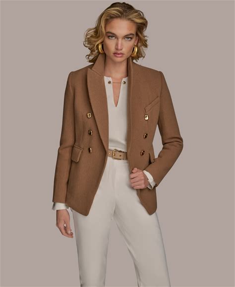 Donna Karan New York Women's Double Breasted Buttoned Blazer - Camel - Size XS