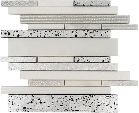 Artisana 12x12 in. White Silver Polish Foil Texture Stone Linear Stack Mosaic Wall And Floor Tile (4.83 Sqft/Case,5Pack)