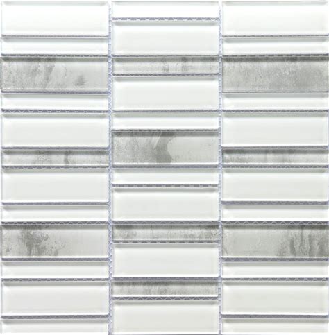 Modern White Gray Linear Stacked Glass Mosaic Tile B2C-LAVIWH1212MO
